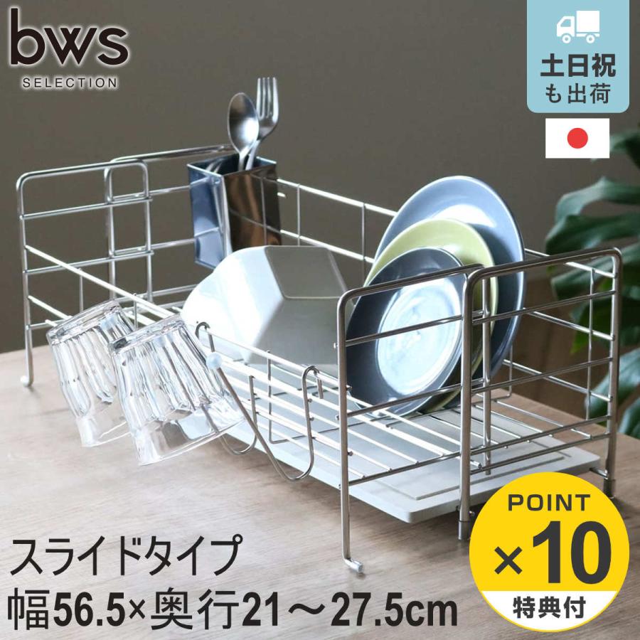特典付き ビーワーススタイル 水切りラック KAWAKI スライドタイプ ( 珪藻土 ステンレス 日本製 カトラリーポケット付き グラスホルダー付き 水切りかご )