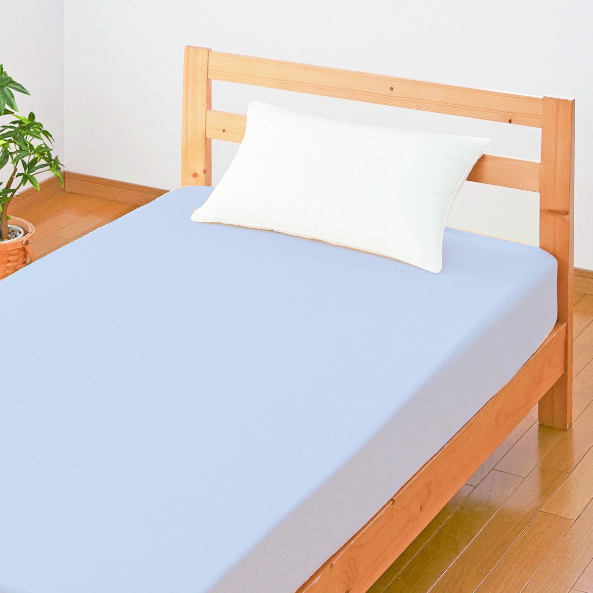シングルささっと着脱できる快適な寝心地のボックスシーツです。綿100%の生地を使用した安心の日本製です。明るい色味で清潔感のある2色からお選びいただけます。