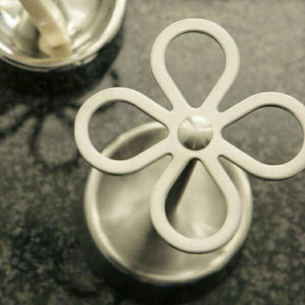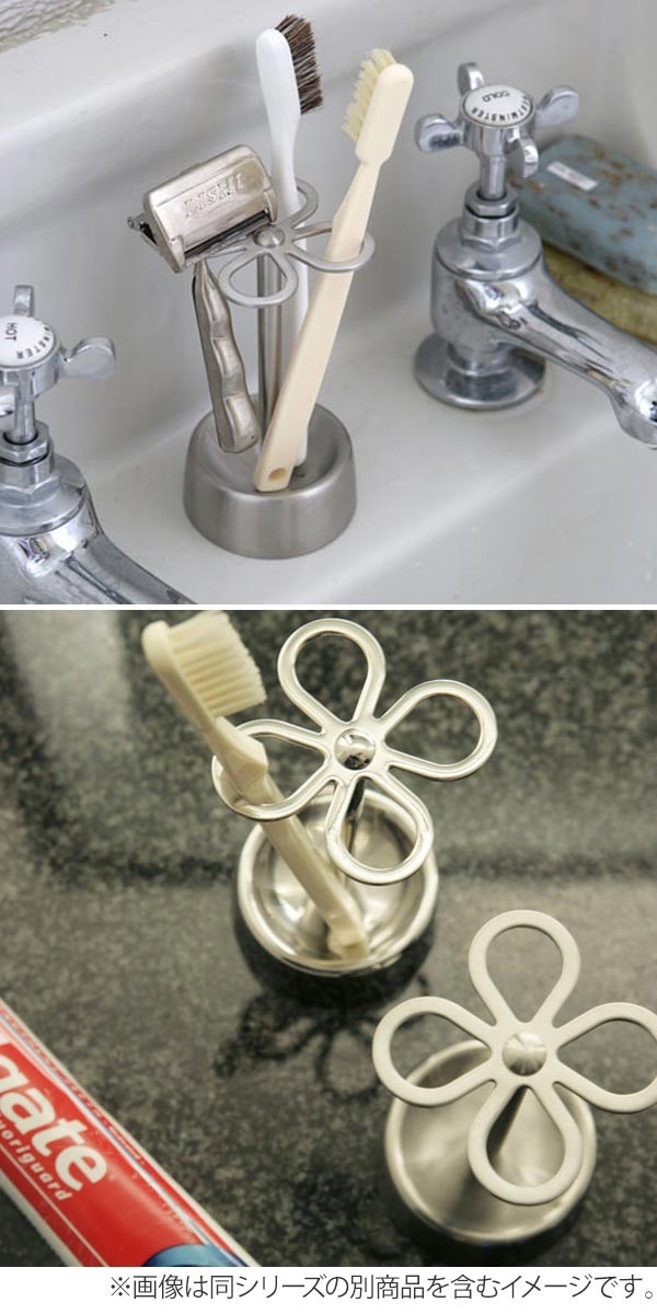 お花をモチーフにしたユニークな歯ブラシホルダー(ステン仕上げ)です。清潔感のあるステンレス製で歯ブラシは4本までスタンドが可能です。また、それぞれが密着しない構造なのでとても衛生的です。シンプルなデザインで洗面台をさりげなくお洒落な雰囲気に演出してくれます。ファミリーでもカップルでも、もちろん一人暮らしでも重宝します。気軽な引っ越し祝いやプレゼントにもおすすめです。