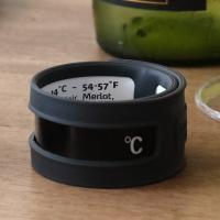 ユニークなデザインワインにくるりと巻きついて簡単にセットすることが出来ます。一般的なワインボトルに幅広く対応し、500ml用ペットボトルの温度も測ることが出来ます。 | ワインごとの最適温度が分かる本体裏側にはワインの種類と最適温度が表示されています。飲み頃の温度でワインを飲めば美味しさも格別です。 |