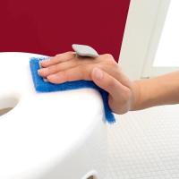プラスチック製品についた水アカ・湯アカに浴槽やカウンター、風呂椅子など浴室のプラスチック製品についた頑固な水アカ湯アカを、研磨剤入りのスポンジがきれいに落とします。洗剤を使わず水だけで汚れが落ちるので、お肌にも環境にも優しい商品です。