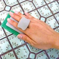 洗剤無しできれいに落ちる研磨剤入りの硬い素材のスポンジが、水だけで浴室タイルについた頑固な汚れを落します。洗剤を使わないので、お肌にも環境にも優しい商品です。