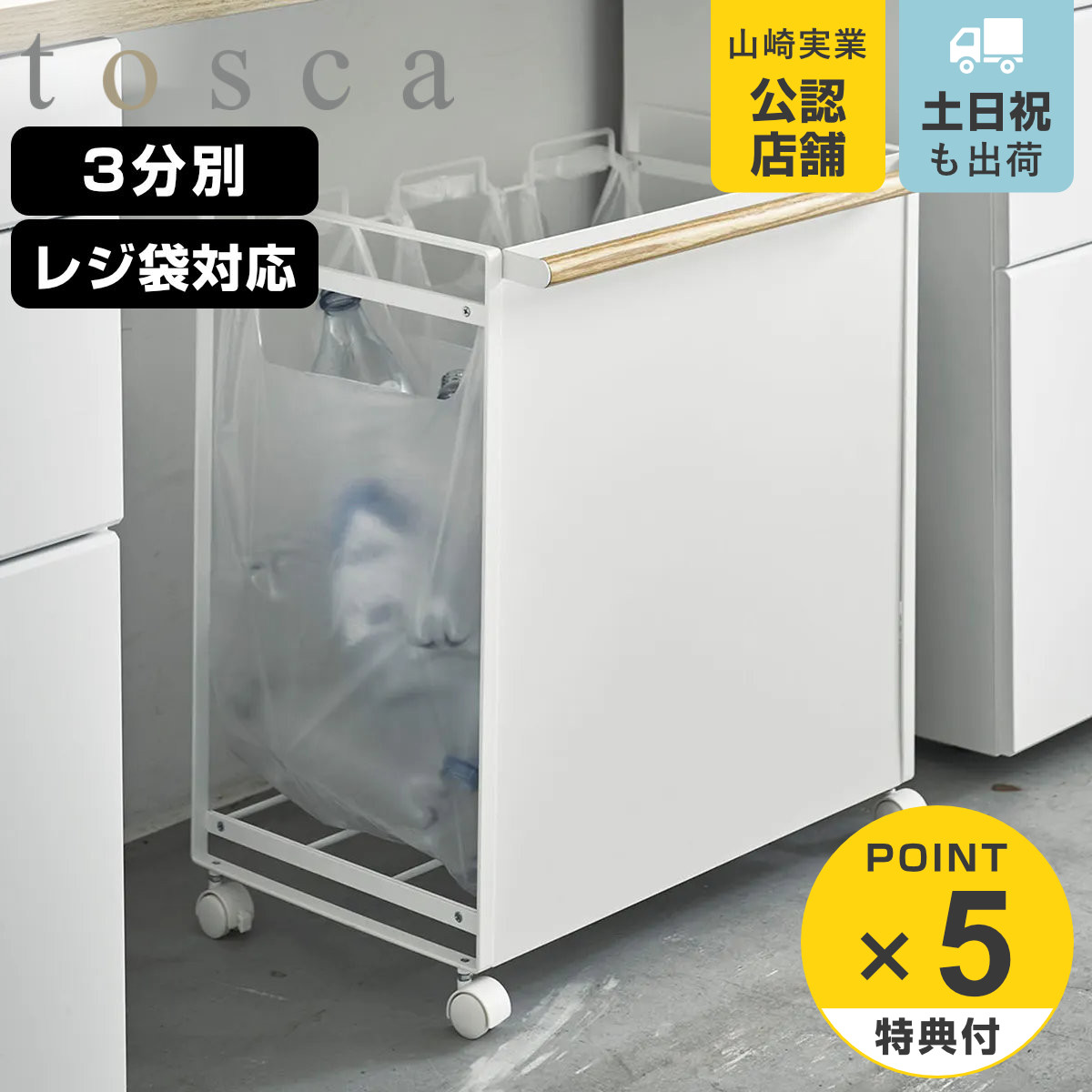 特典付き 山崎実業 tosca 目隠し分別ダストワゴン トスカ 3分別 ホワイト ( 4903208047807 分別ダストボックス ごみ箱 幅51.5 分別 レジ袋スタンド )