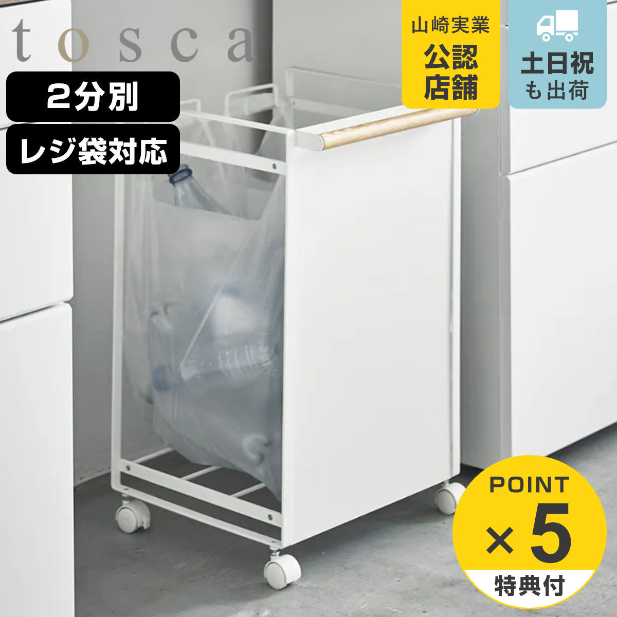 特典付き 山崎実業 tosca 目隠し分別ダストワゴン トスカ 2分別 ホワイト ( 4903208047791 分別ダストボックス ごみ箱 幅36 分別 レジ袋スタンド )