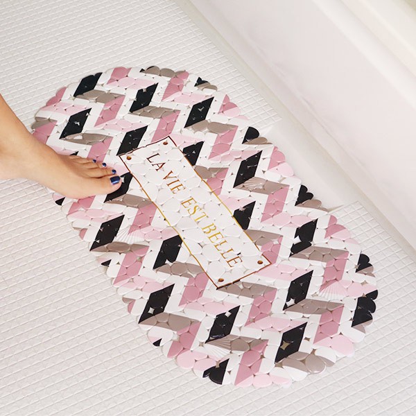 ●バスマットの表面は小石や貝殻を並べたような可愛いデザインです。また、デコボコした表面が足の裏に引っかかり滑り止めになります。