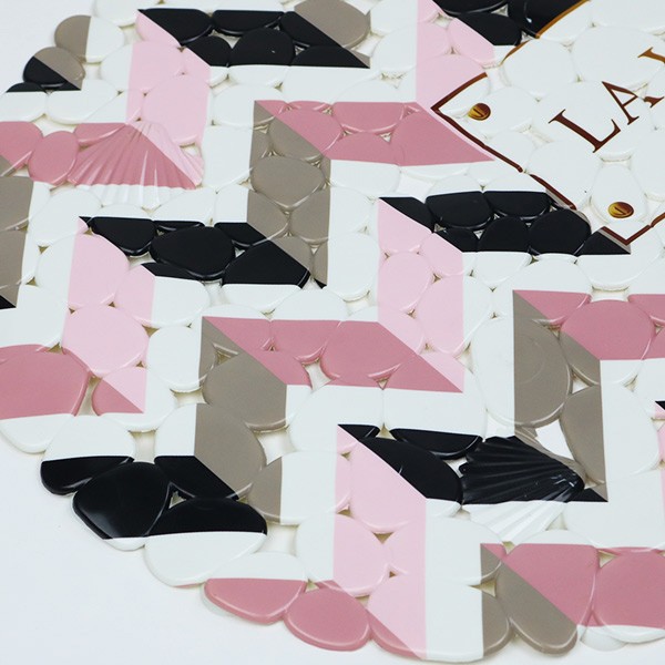 表面は小石や貝殻を並べたような可愛いデザインです。また、デコボコした表面が足の裏に引っかかり滑り止めになります。