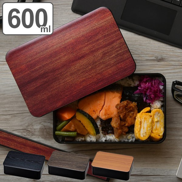 お弁当箱 1段 黒檀 600ml ランチボックス ( 弁当箱 レンジ対応 食洗機対応 木目調 和風 )