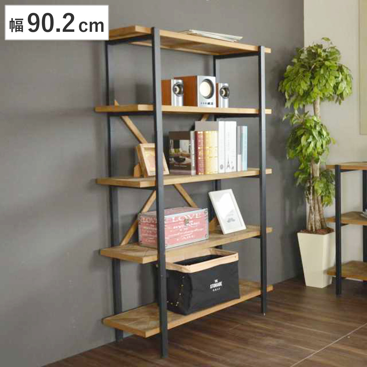 オープンラック 幅90cm 5段 組木 古材風 KALEIDO ( 本棚 収納棚 収納ラック シェルフ )