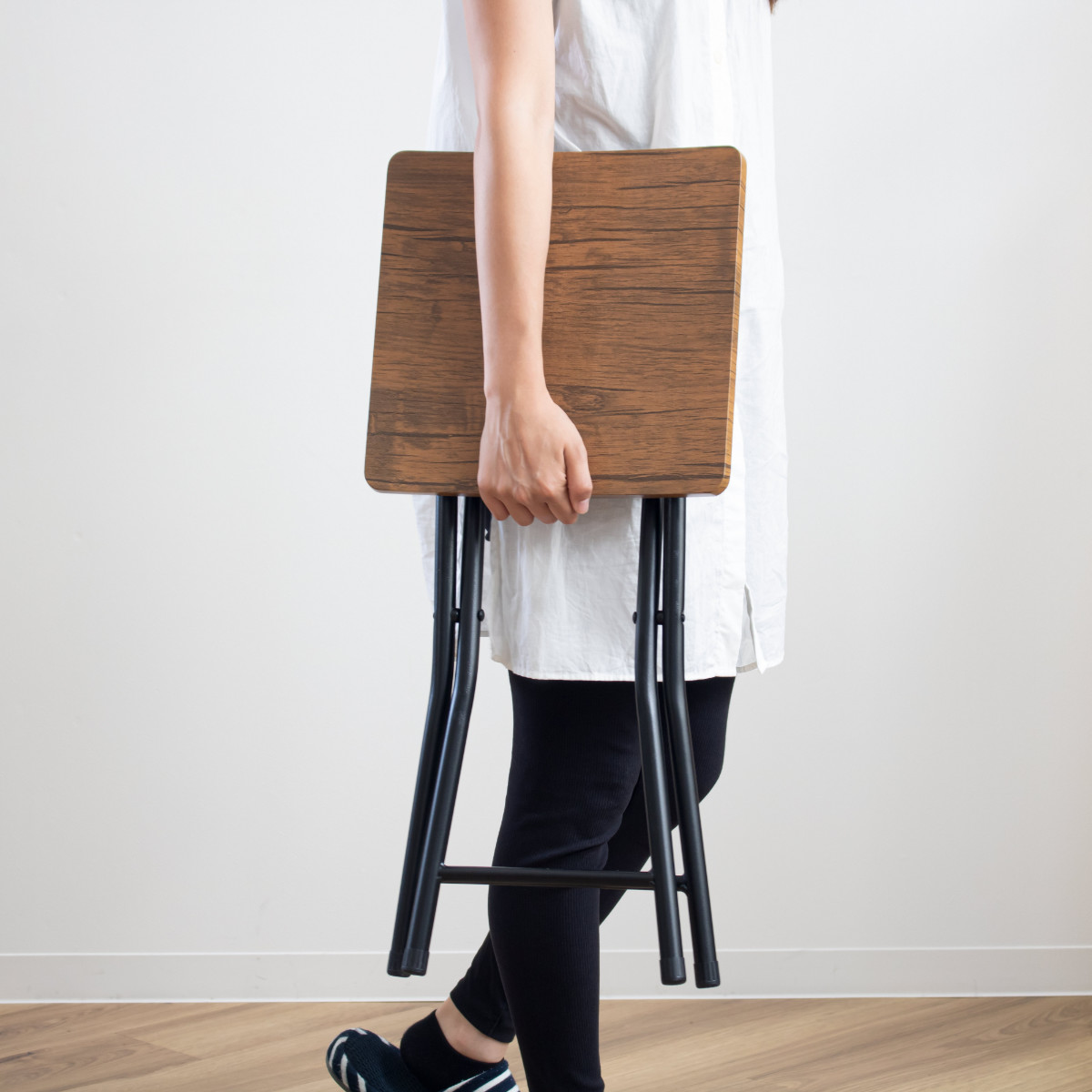 ●木目調にブラックスチールを組み合わせた折りたたみスツール2脚セットです。