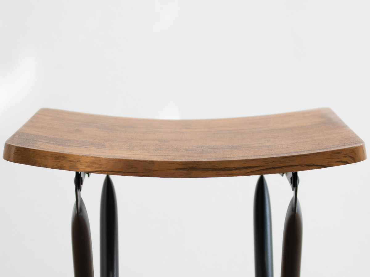 木目調の座面とブラックスチールのフレームで、異素材を組み合わせたモダンなスツールです。シンプルでスッキリとしたデザインは様々なインテリアに馴染みます。