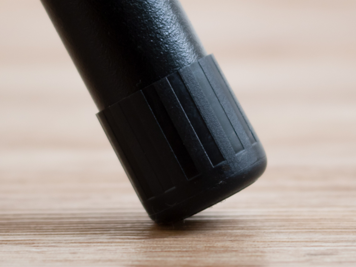 ブラックスチールのフレームには粉体塗装が施されており、マットな仕上がりです。足先にはキャップが付いています。