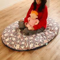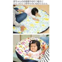 | 抱っこのときも ベビー布団ほど固くないので布団に包んだ状態で抱っこしてあげられます。そのままベッドまで運んであげることができるので、赤ちゃんが目を覚ます心配がなくママも安心です。 | プレイマットとしても お座りが出来るようになれば、絵本を読んだりおもちゃで遊んだりプレイマットとしてもお使いいただけます。 |
