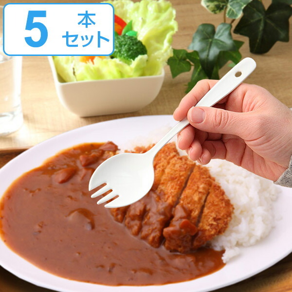 同色5本セットすくう、切る、刺すがこれ1本でできる、カツカレーのためのスプーンです。面が広くたくさんすくえて、スプーンで切ったカツをフォーク部分で刺して食べることができます。