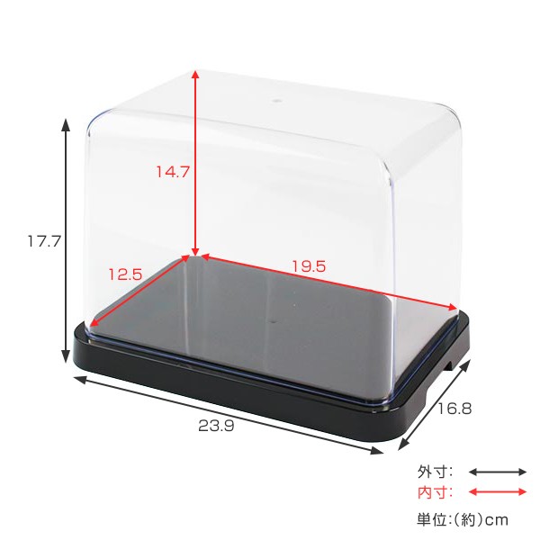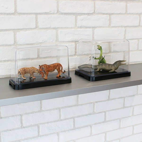 大切なコレクションをホコリから守る大切なコレクションをホコリやゴミから守りつつ飾れるケースです。カバーはスチロール樹脂の一体成形で生産されていて、肉厚で丈夫、カバーもベースも丸みを帯びたデザインです。透明度の高い仕上がりです。
