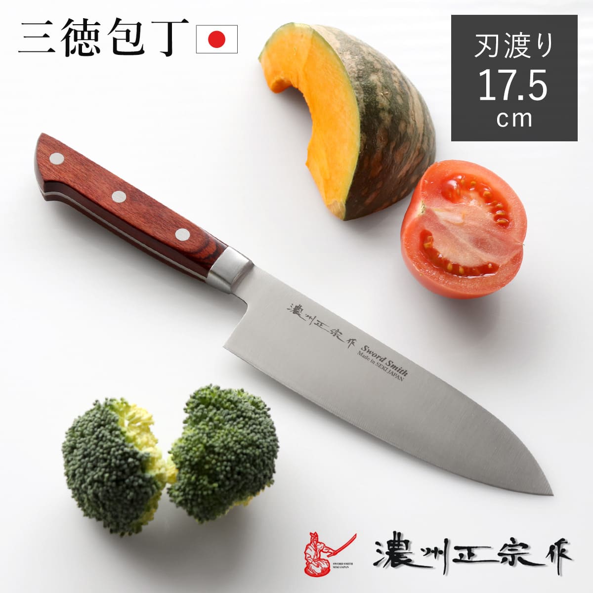 三徳包丁 17.5cm 濃州正宗 日本製 洋包丁 モリブデン鋼 天然木 ( 包丁 料理包丁 万能包丁 おすすめ )