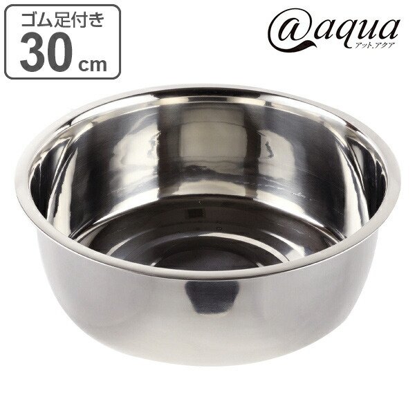洗い桶 丸型 直径30cm ステンレス製 アットアクア 排水穴なし ゴム脚あり ( 洗桶 洗いおけ たらい タライ 桶 おけ オケ つけ置き 脚付き )