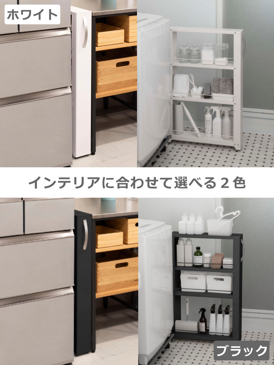 また、スチールには粉体塗装が施されているのでサビやカビにも強く、汚れても拭き取りやすいので水回りの収納にピッタリです。