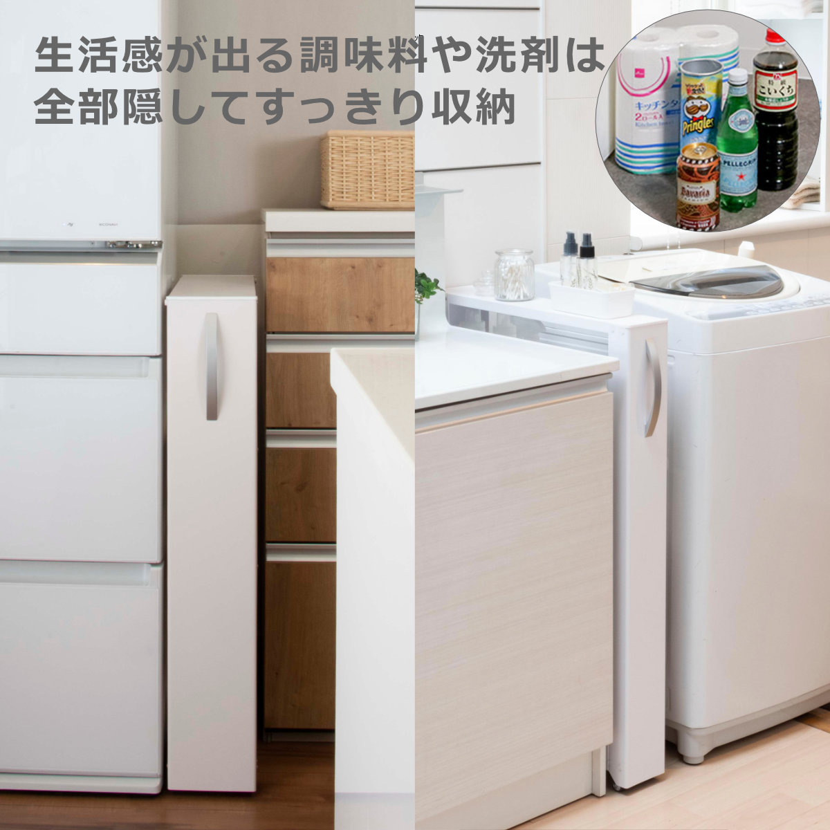 キッチンではよく使う調味料や食品のストックの収納に、ランドリーでは洗剤やタオルの収納に使えます。