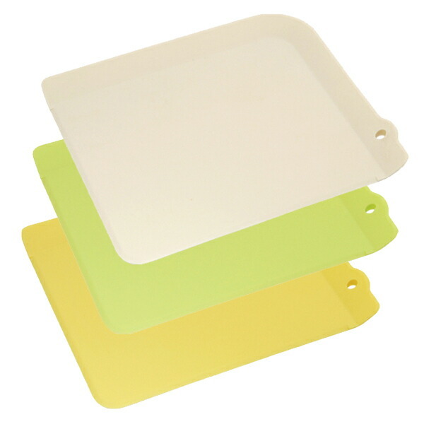 ちょこっと使いが便利なプチサイズのまな板3枚セットです。調理の際にまな板として使うだけでなく、お皿代わりとしてお使いいただけます。場所もとらず、洗うのも簡単、何枚あっても便利です。細かく切った食材のこぼれ落ちを防ぐフードストッパー付きで便利です。【商品詳細】 サイズ/(1枚あたり)約縦16.5×横14.5×フチの高さ0.2cm 重量/約35g 内容量/3枚入り (アイボリー・グリーン・イエロー)×各1枚 材質/ポリプロピレン 生産国/日本製 備考/抗菌加工 食洗機OK《食洗機対応 抗菌まな板 小さい ミニ プチ 使い分け シートタイプ 薄い 軽量 軽い 抗菌加工 下ごしらえ カッティングボード シートまな板 シート俎板 3色セット 抗菌加工まな板 抗菌仕様 ミニサイズ コンパクトサイズ アウトドア キャンプ ピクニック バーベキュー BBQ 野外炊飯 ソロキャンプ キッチンツール キッチン用品 調理道具 台所用品 LH4037》