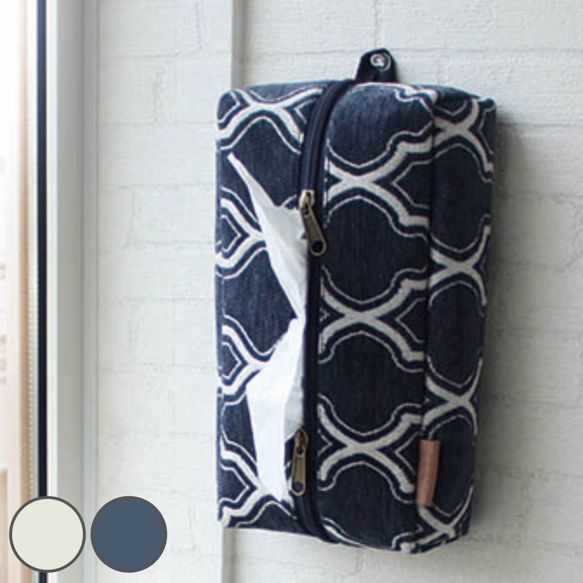 ダブルファスナー付き取り出し口はダブルファスナーでお好みの幅に調節できます。使用しない時はファスナーを締めてティッシュを保管すれば、汚れやホコリが被らずに清潔に使用できます。