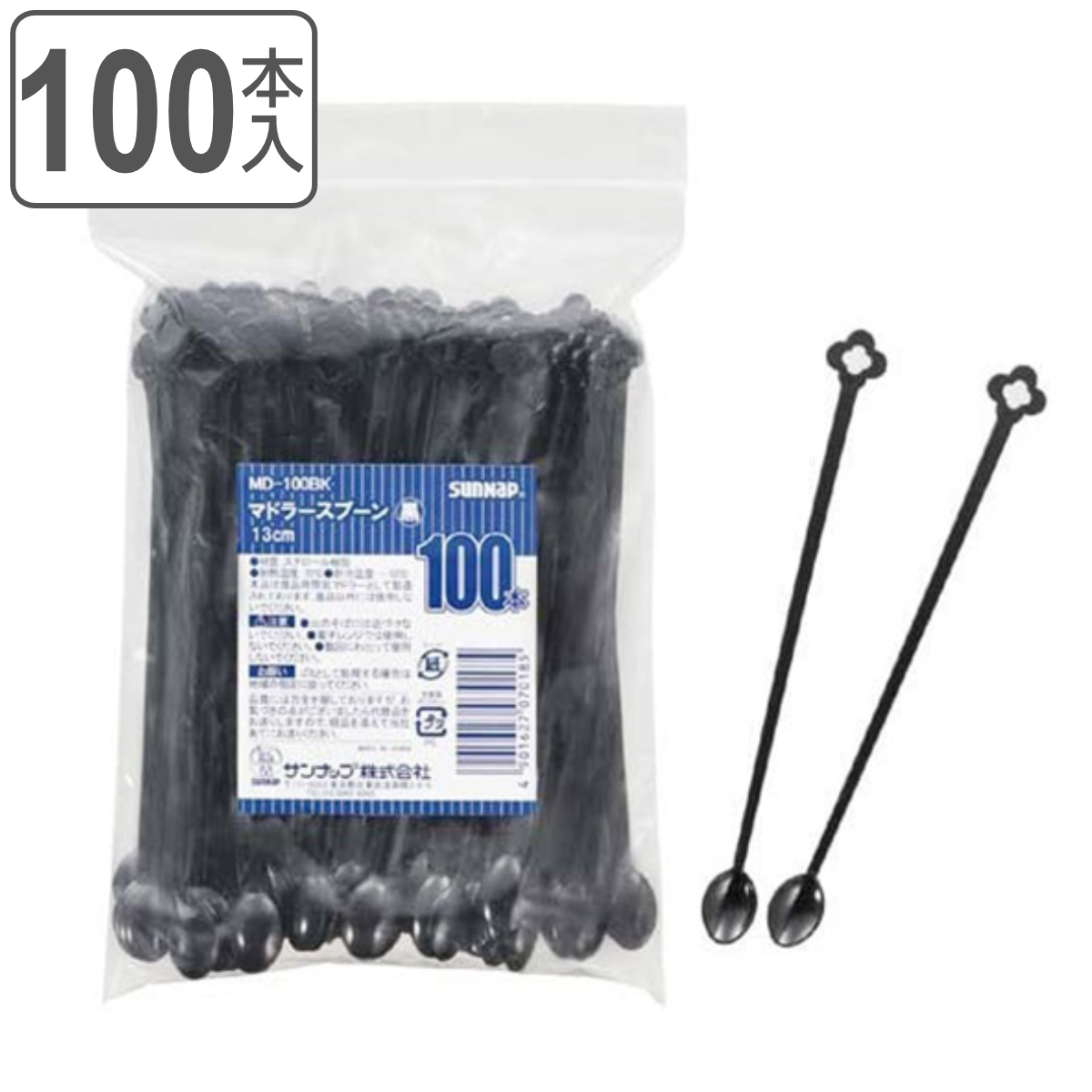 使い捨て マドラースプーン黒 100本入 ( カトラリー スプーン ミニサイズ ミニ 13cm 100本 マドラー )