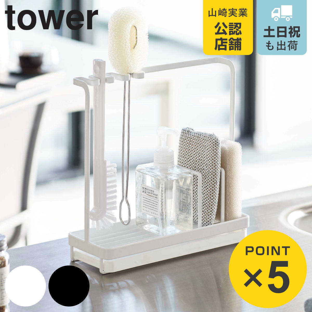 スポンジ置き ボトルホルダー ボトルラック 4903208049948 洗剤置き キッチンラック キッチン収納 yamazaki シンク用品 シンク周り 水周り用品 水まわり用品 水回り用品 キッチン ダイニング リビング 書斎 子供部屋 ランドリー サニタリー 脱衣所 洗面所 キッチン用品 台所用品 収納用品 整理整頓 おすすめ オススメ 便利 役立つ 白 黒 無地 シンプル スタイリッシュ お洒落 おしゃれ オシャレ 山実 towerシリーズ