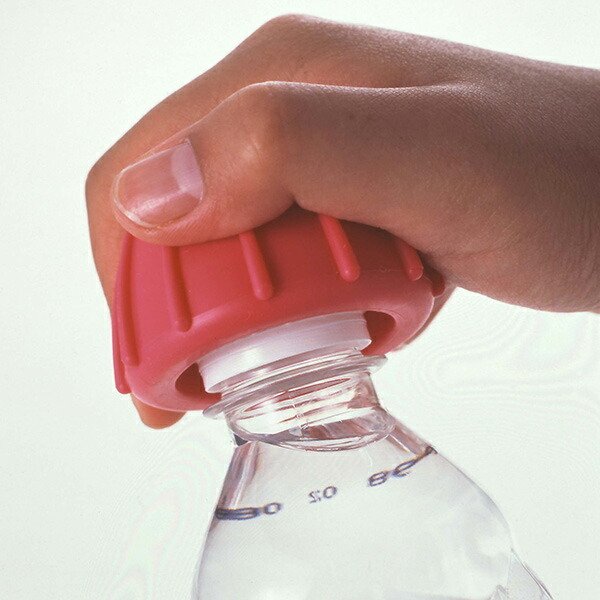 軽い力で開けられるペットボトルオープナーペットボトルや栄養ドリンクのキャップも軽い力で開けられる便利グッズです。ペットボトルのキャップにグッとしっかりかぶせ、開封方向に回します。柔らかい感触の軟質樹脂を使用しているので、手に程よくフィットし、痛くないのも嬉しいポイント。内側ではしっかりキャップを固定するので、軽い力で開けられます。持ち運びもできるサイズなのでお出かけの時も活躍します。