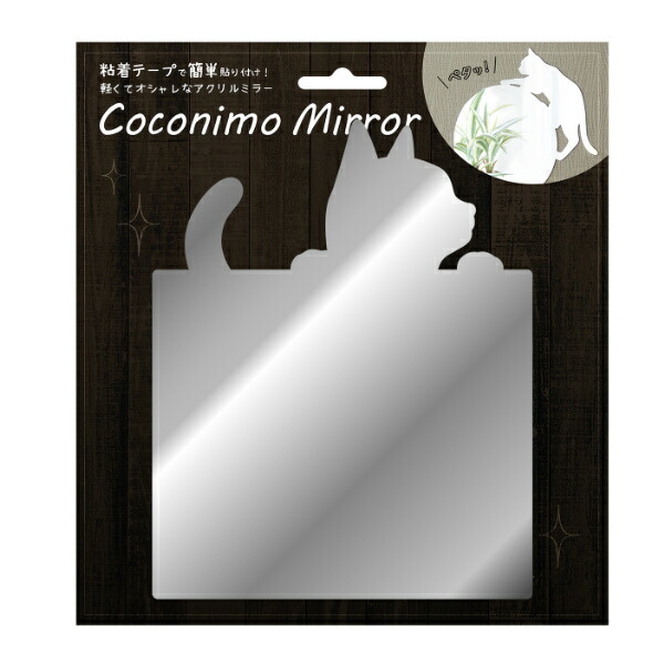 ミラー ねこ 角型 ウォールミラー アクリル製 鏡 かがみ シール 壁 猫 ネコ ( アクリルミラー 貼る 貼る鏡 カガミ ステッカーミラー )