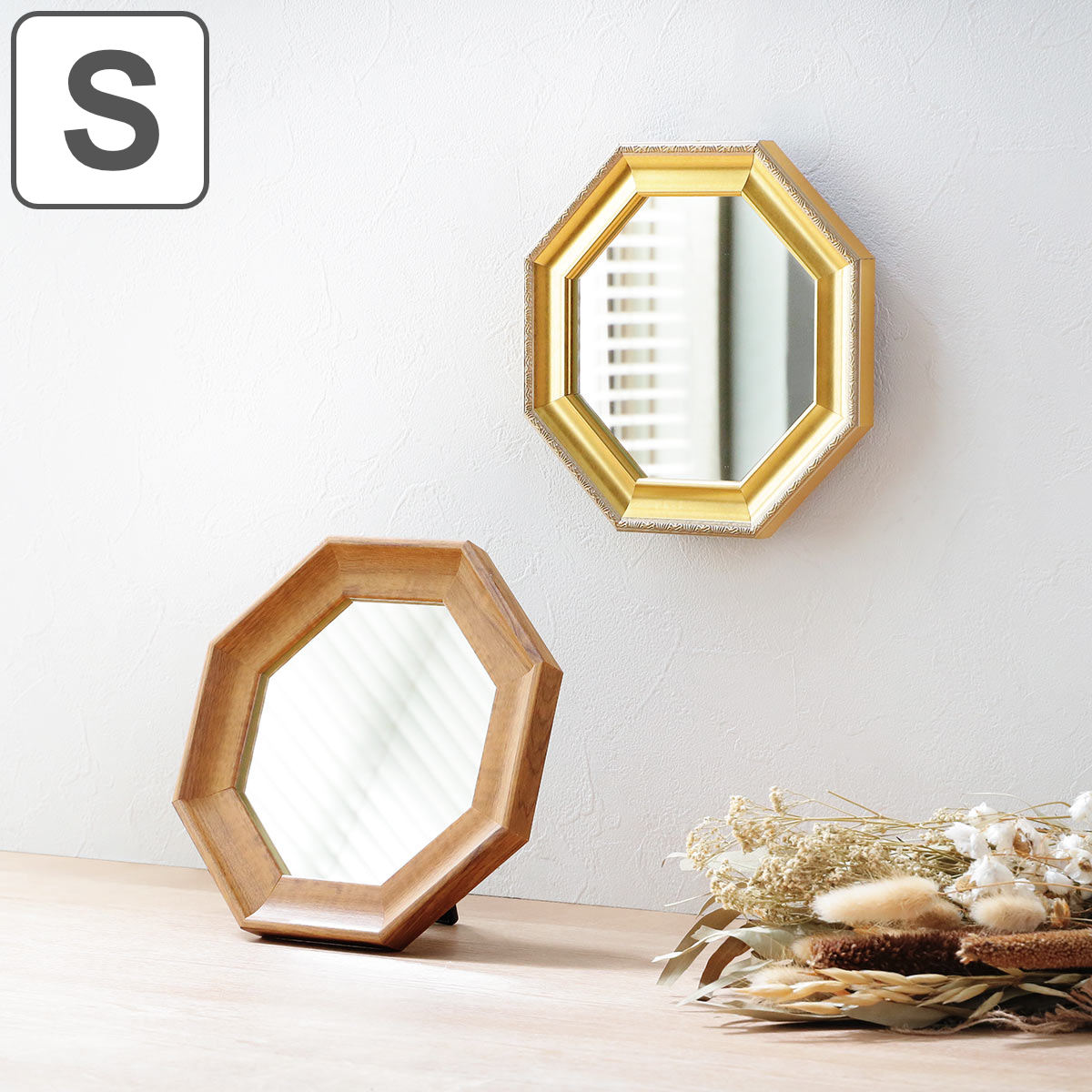 八角ミラー S ウォールミラー スタンドミラー 壁掛け 卓上ミラー ミラー 八角 鏡 かがみ ( メイクミラー 化粧 壁掛けミラー )