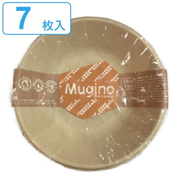 紙皿 未晒しボウル 15cm 7枚入 M Mugino ( 使い捨て 紙 皿 簡易食器 ペーパボウル プレート 7枚 15センチ )
