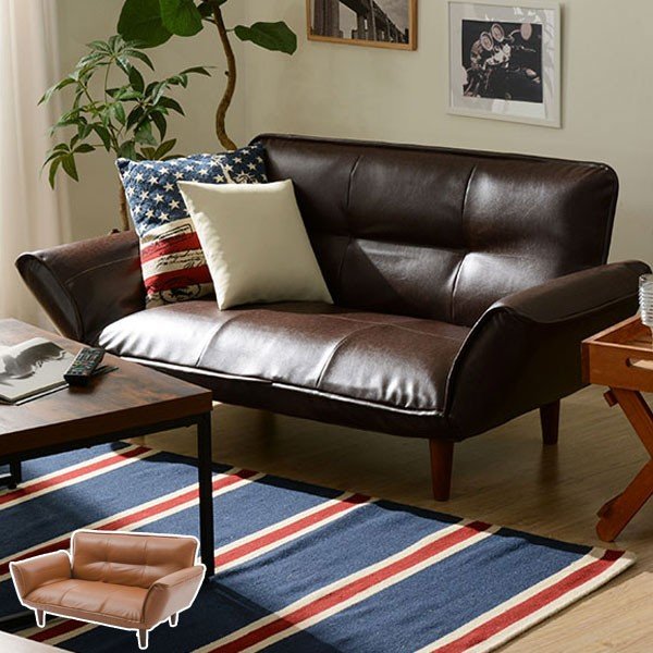ソファ 幅130cm 2人掛け ヴィンテージ調 PVC素材 レザー調 ひじ掛け リクライニング 14段階 カウチ ソファー ( フロアソファ リビングソファ 二人掛け )