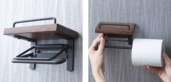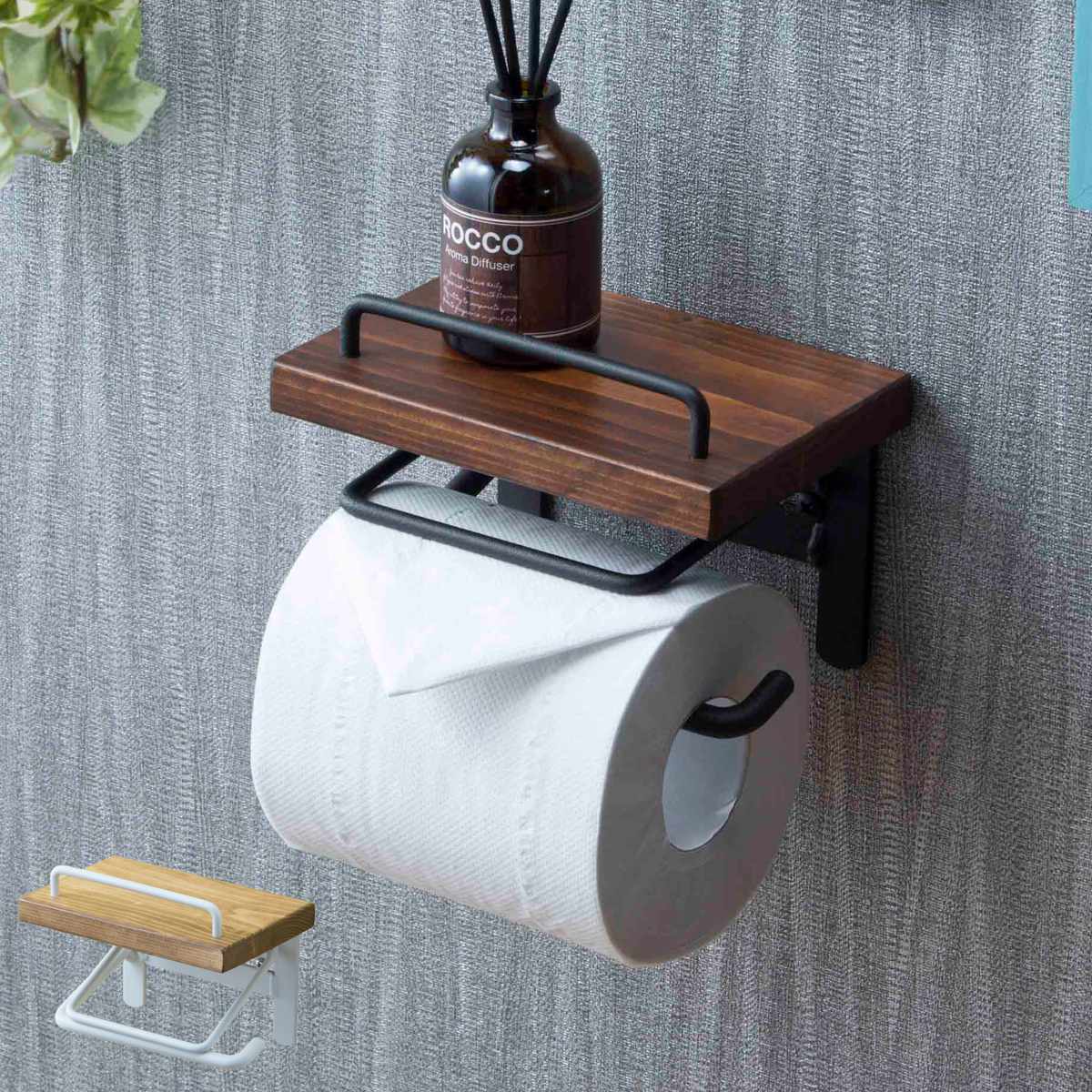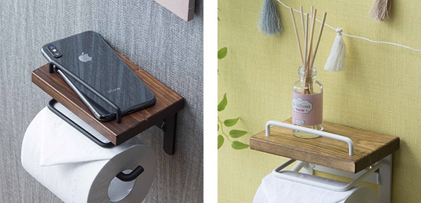 棚付きのペーパーホルダーなので、スマホや小物などのアイテムを置くことが出来て便利です。