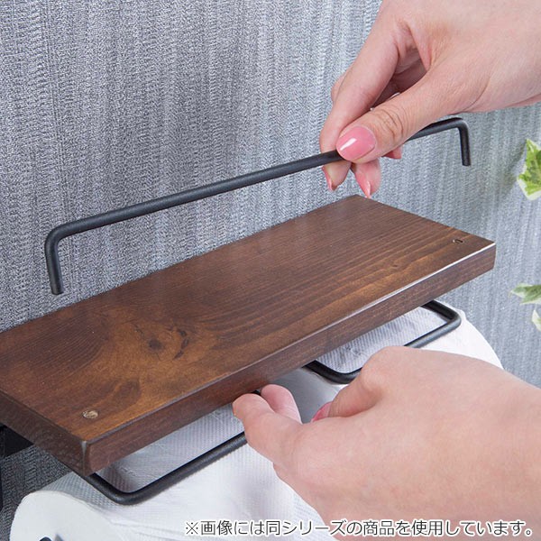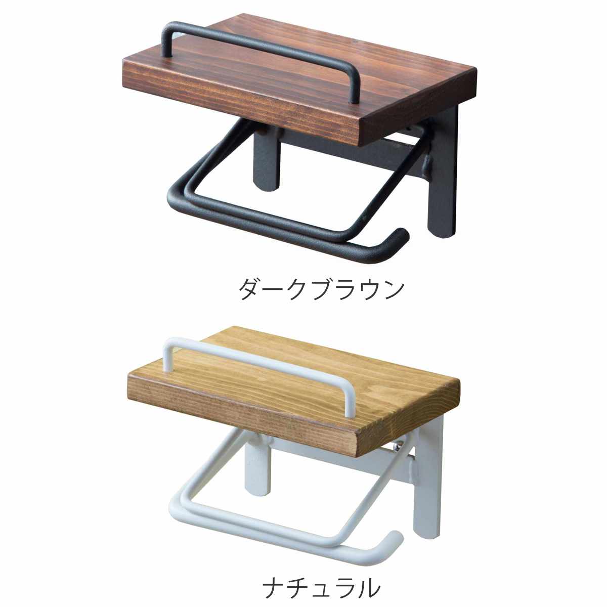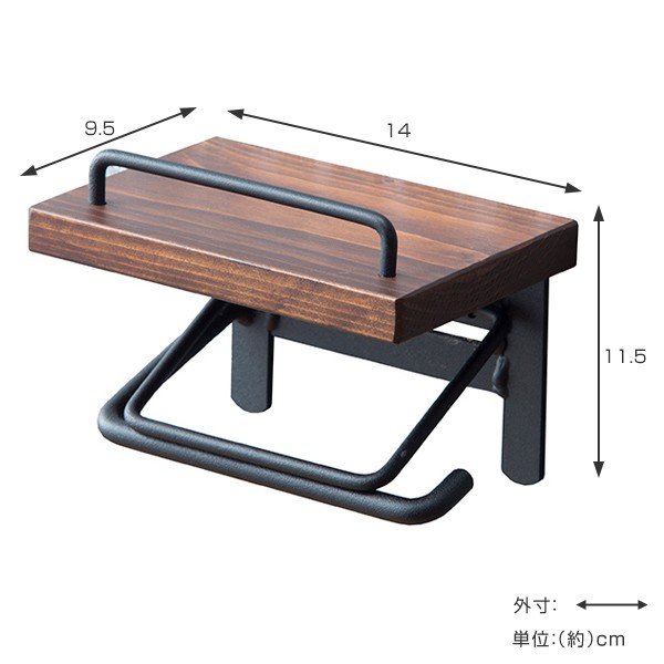 トイレットペーパーホルダー 棚付 天然木 シングルタイプ 幅14cm ダークブラウン ( ペーパーホルダー トイレットペーパー シングル )