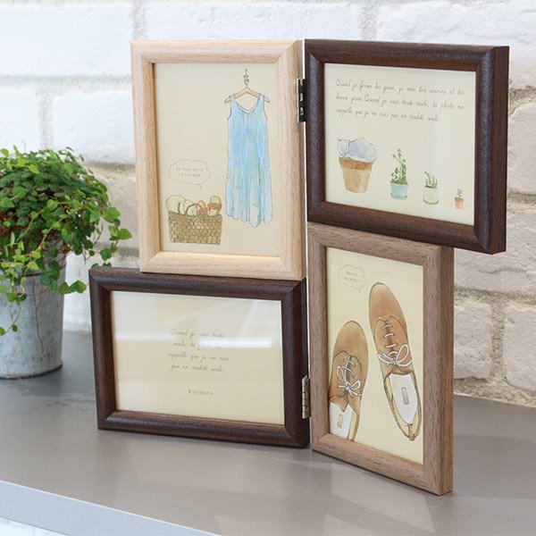 上品でナチュラルな質感が魅力的なフォトフレームです。軽量で手軽な樹脂素材でできています。飽きのこないベーシックなデザインで場所を選ばず置くことができます。8.9×12.7cm(L版)の写真を4枚入れることが出来ます。 【商品詳細】サイズ/約幅30.5×奥行1.5×高さ26cm 内寸:ナチュラル・ブラウン・約幅9.1×高さ12.9cm、ダークブラウン:約幅12.9×高さ9.1cm 窓寸:ナチュラル・ブラウン・約幅8.5×高さ12.2cm、ダークブラウン:約幅12.2×高さ8.5cm 材質/ポリスチレン、PET、ガラス 生産国/中国製 備考/※約8.9×12.7cm(L判)の写真が入ります。 《フォト L 複数枚 スタンド 縦横 インテリア ショップカード ナチュラル おしゃれ 軽い 木目 ガラス 蝶番 家族写真 動物写真 風景写真 飾る 部屋 玄関 リビング 寝室 シンプル お洒落 オシャレ ギフト プレゼント 女性 雑貨 母の日 誕生日 結婚 結婚祝い 出産 出産祝い 子供 ベビー ホワイトデー 卒業 引越し 新築祝い 敬老の日 還暦祝い 記念日 開店 開業 送別 思い出 ショップ 店舗 LH3214 LH4720》