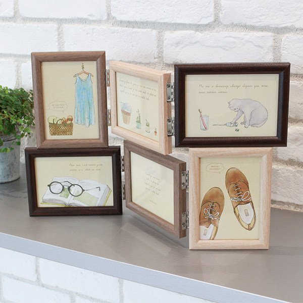 上品でナチュラルな質感が魅力的なフォトフレームです。軽量で手軽な樹脂素材でできています。飽きのこないベーシックなデザインで場所を選ばず置くことができます。8.9×12.7cm(L版)の写真を6枚入れることが出来ます。 【商品詳細】サイズ/約幅43.5×奥行1.5×高さ26cm 内寸:縦向き・約幅9.1×高さ12.9cm、横向き・約幅12.9×高さ9.1cm 窓寸:縦向き・約幅8.5×高さ12.2cm、横向き・約幅12.2×高さ8.5cm 材質/ポリスチレン、PET、ガラス 生産国/中国製 備考/※約8.9×12.7cm(L判)の写真が入ります。 《フォト L 複数枚 スタンド 縦横 インテリア ショップカード ナチュラル おしゃれ 軽い 木目 ガラス 蝶番 家族写真 動物写真 風景写真 飾る 部屋 玄関 リビング 寝室 シンプル お洒落 オシャレ ギフト プレゼント 女性 雑貨 母の日 誕生日 結婚 結婚祝い 出産 出産祝い 子供 ベビー ホワイトデー 卒業 引越し 新築祝い 敬老の日 還暦祝い 記念日 開店 開業 送別 思い出 ショップ 店舗 LH3214 LH4720》