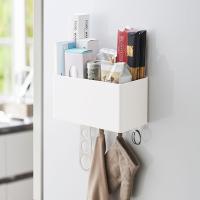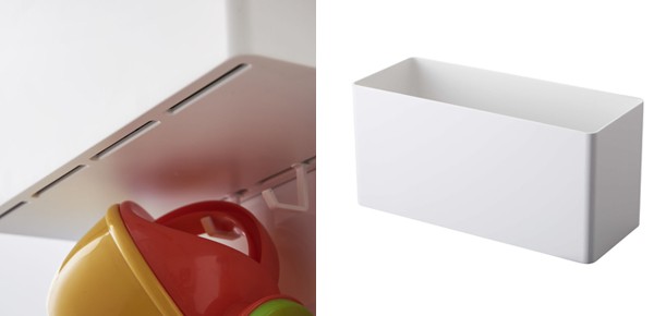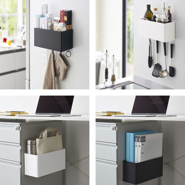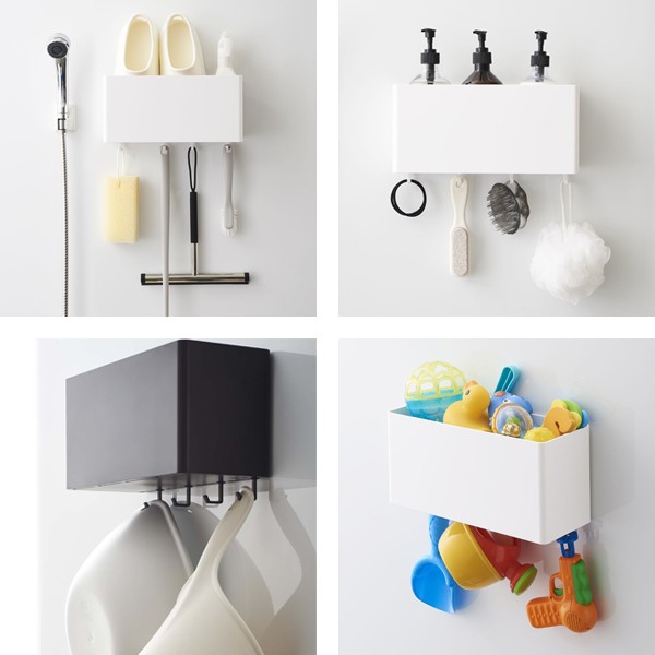 | 気軽に使えるマグネット式 大きなマグネットでしっかり支えるので安定感があります。(耐荷重:約3kg) | フック付き 引っ掛け収納に便利なフック4個付きです。(本体同色) |