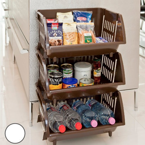 間口が広く、積み重ねが簡単なバスケット3個セットです。縦に積み重ねたり、横に連結させたり用途に合わせて使い分けられます。脚にツメが付いているので、積み重ねたときにしっかり固定できます。本体にはスリットが入っているので、野菜のストッカーとしても使えます。キッチンだけでなく、クローゼットや子ども部屋など様々な場所の収納バスケットとして便利にお使いいただけます。 【商品詳細】サイズ/約幅44×奥行36.5×高さ23cm 容量/重量:1個あたり約610g 内容量/同色3個セット 材質/ポリプロピレン 種類/ブラウン、ホワイト 生産国/日本製 備考/※キャスターは別売りです。 《積み重ね スタッキング 連結 パントリー収納 収納バスケット 収納ボックス 収納ケース 収納 プラスチック パントリー 食品 食品ストッカー 食料品 野菜 食材 調味料 おかし おやつ ストック 常備 カゴ かご 籠 BOX 洗濯物 ランドリー収納 ランドリーバスケット タオル収納 洗面所 脱衣所 リビング キッチン 台所 クローゼット 衣類収納 おもちゃ すき間収納 隙間収納 整理用品 整理整頓 収納用品 茶色 白 無地 シンプル おすすめ オススメ 便利 使いやすい LH4665》
