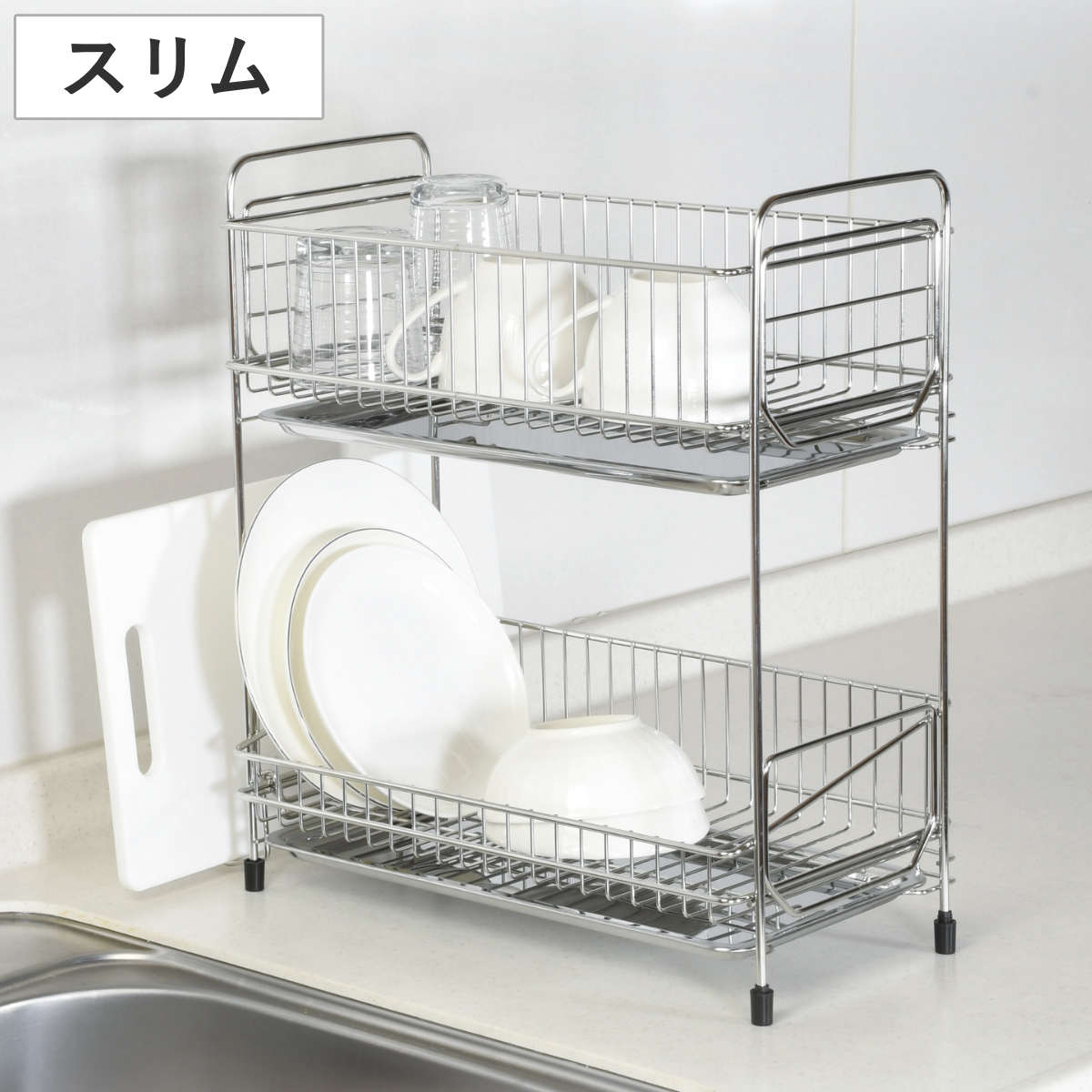 場所をとらないスリムサイズの2段式水切りラック●アットアクアシリーズの2段式水切りラックです。