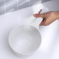 手にしっかりなじむ、持ちやすく使いやすい片手おけです。フラットな形状の持ち手部分は握りやすく、お湯がすくいやすいです。