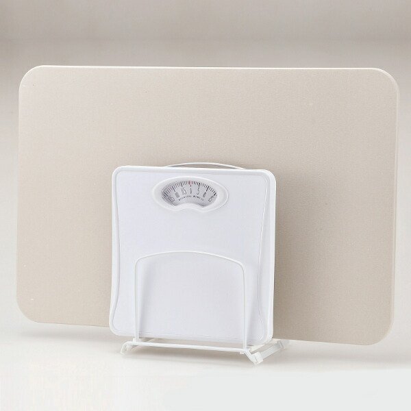 ●厚さ2.5cmまでの珪藻土バスマットと厚さ5.5cmまでの体重計が同時に立てられます。