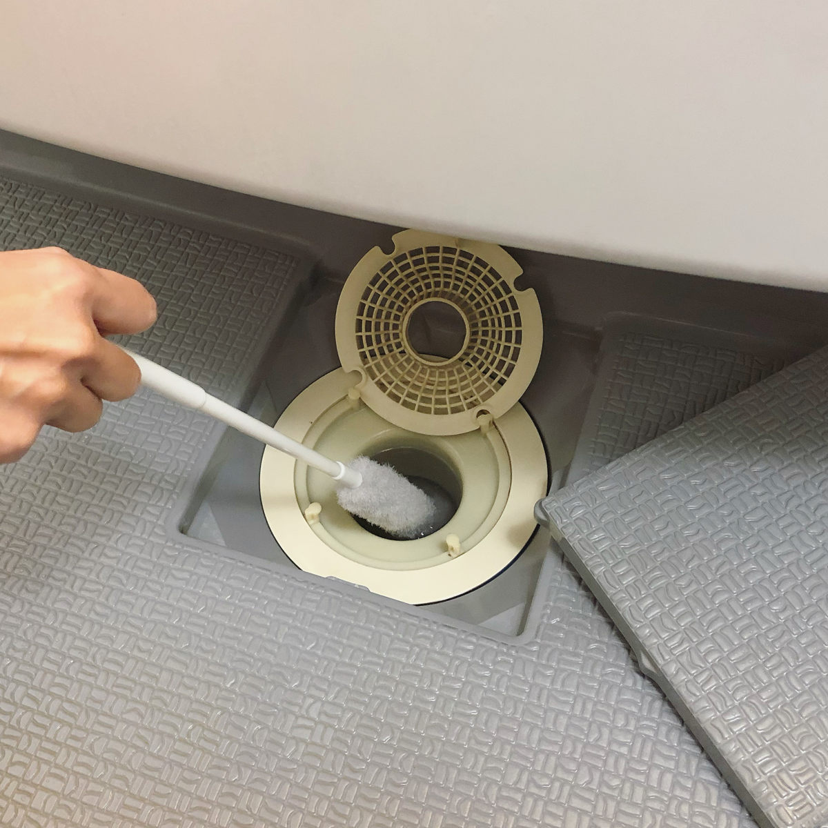 ●排水管にクリーナーを入れて数回こするだけです。
