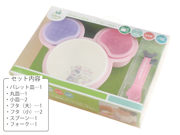 3つのお皿を片手で持てるので、離乳食を食べさせやすい便利なパレットです。お皿は分けて使用できるので、小皿は冷蔵庫、丸皿は温めるなど個別に温度調整が出来ます。丸皿と小皿はフタ付きなので、冷凍、冷蔵庫で保存する時に積み重ねることが出来るので…(続きは下に) 【商品詳細】サイズ/約幅20.5×奥行5.5×高さ18cm スプーン・フォーク:全長約12cm 重量/約205g 食器洗い乾燥機/フタを外せばOK 電子レンジ/フタを外せばOK 内容量/1セット(パレット皿1枚、丸皿・フタ1枚、小皿・フタ各2枚、スプーン1本、フォーク1本) 材質/ポリプロピレン 生産国/日本製 《電子レンジ対応 軽い 食洗機対応 キッズ 子ども プラスチック 赤ちゃん 皿 小皿 キャラクター フタ付き フタ 蓋 ふた 付き うつわ プレート ミニーちゃん 女の子 男の子 お子様ランチプレート 食洗機可 レンジ可 電子レンジ可 電子レンジ 対応 OK 使える 可能 チンできる レンチン 食洗機 出産祝い ご出産祝い 出産 ご出産 誕生日 プレゼント ギフト 贈り物 お祝い お食事 食事グッズ グッズ 用品 赤ちゃんグッズ 赤ちゃん用品 キャラ キャラクターグッズ 【MickeyMouse_べびー】 LH4901》