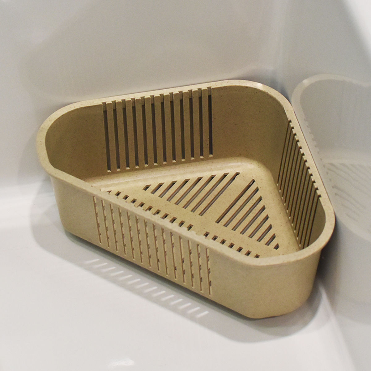 竹から生まれた高い抗菌効果『Bamboo Baseシリーズ』●抗菌性に優れた竹粉と樹脂のバイオマスプラスチックでできた三角コーナー(浅型)です。