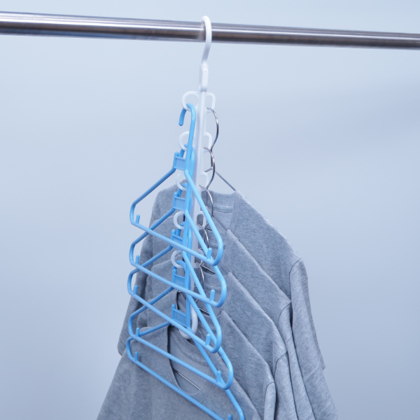 縦にしても使える収納時に縦にして使えば反対側の穴も使え、リレーハンガー1本で計10本のハンガーが掛けられます。