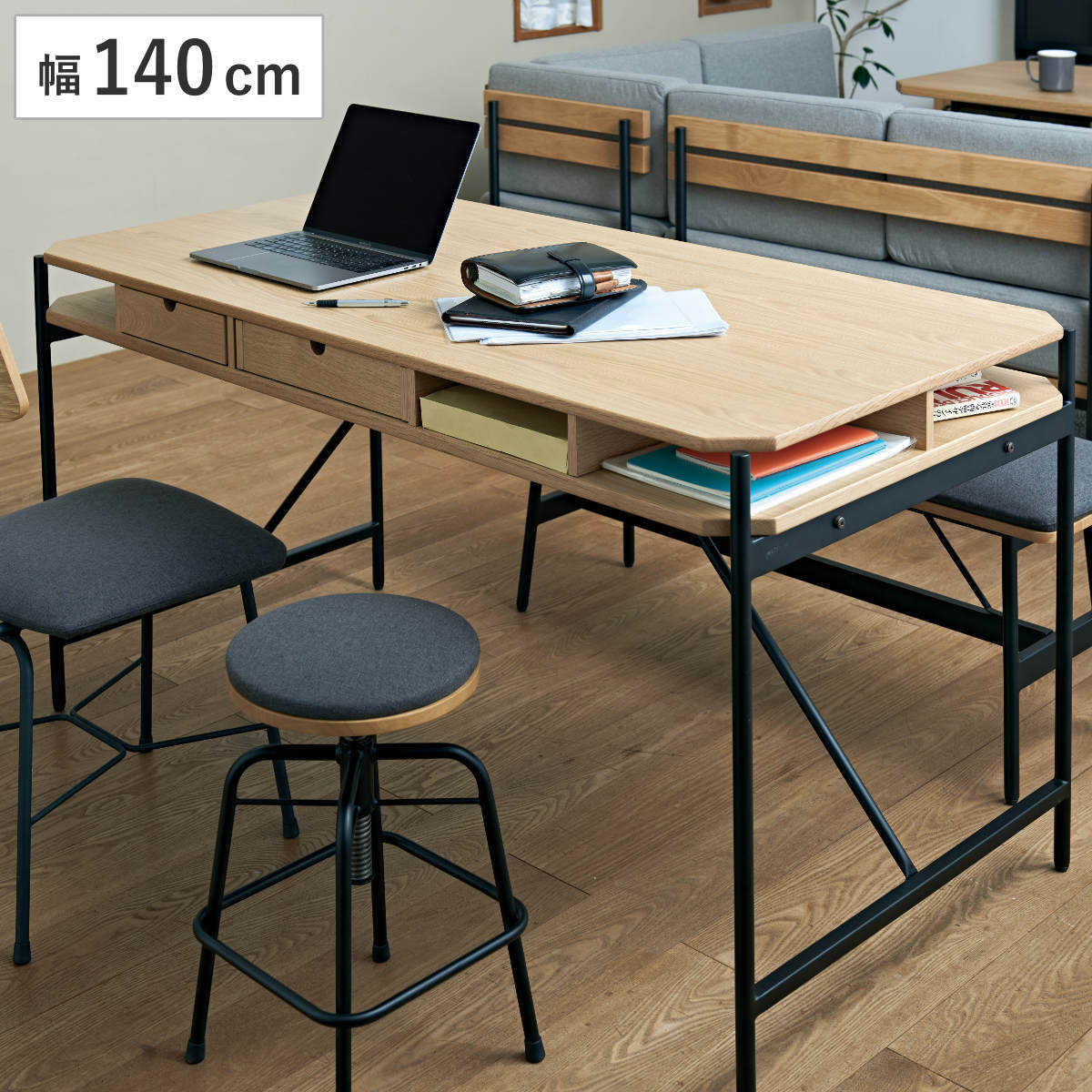 引き出し付きで収納力抜群テーブルには可動式の引き出しが2杯付いており、中央の3マスに設置可能なので、使い方に合わせて変更できます。天板下は収納スペースになっているので書類や本など収納でき、作業スペースを広く使え、見た目もすっきりします。