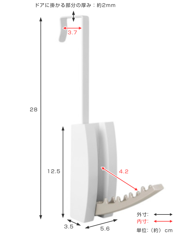 ドアに引っ掛けたり壁に取り付けたりして、バッグ等を収納出来るフックです。フックにくぼみがあるので、ハンガーやバッグがずり落ちることなく引っ掛けられます。フックを使用しない時は折り畳めて、スマートになります。 【商品詳細】サイズ/ドア引っ掛け時:約幅5.6×奥行3.5×高さ28cm 壁取り付け時:約幅5.6×奥行3.5×高さ12.5cm 内容量/1個 付属品:木ネジ×2、アンカービス×2、テンプレート 材質/ウッド(ブナ)、スチール カラー/ホワイト 生産国/中国製 耐荷重/9kg 組立状態/組立品 備考/※ドア幅3.5cmまで対応しています。 《壁面収納 壁 収納 壁面 ハンガーフック ドア用 ホワイト 白 色 おしゃれ 多段 折り畳み コンパクト スリム 洋服掛け 洋服 ジャケット 掛け ハンガー掛け 上着 カバン バッグ掛け かばん収納 鞄収納 カバン収納 クローゼット収納 クローゼット 帽子掛け 扉 インテリア 扉用 コーディネートフック オシャレ ブランド 使いやすい おすすめ オススメ LH6264 LH6104》