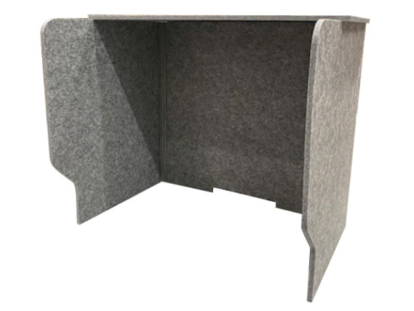 フェルメノンの卓上型集中ブーススタンドは、厚さ12mmの高密度な硬質吸音フェルトボード。マスクより繊維が細かく高密度なので、飛沫感染対策や咳エチケットとして様々なシーンでご活用いただけます。高さは約70cmもあるので、すっぽり頭が隠れます。対面レイアウトの職場でも安心して仕事ができます。