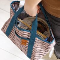 コンビニ弁当やお惣菜を入れるのにぴったりなサイズです。底マチが広いタイプだから、お弁当やお惣菜を傾けずに持ち運べます。お弁当と500mlのペットボトルや水筒が入る大きさで、毎日のちょっとしたお買い物にも便利です。男女問わず持てる自然素材をプリントしたデザインです。