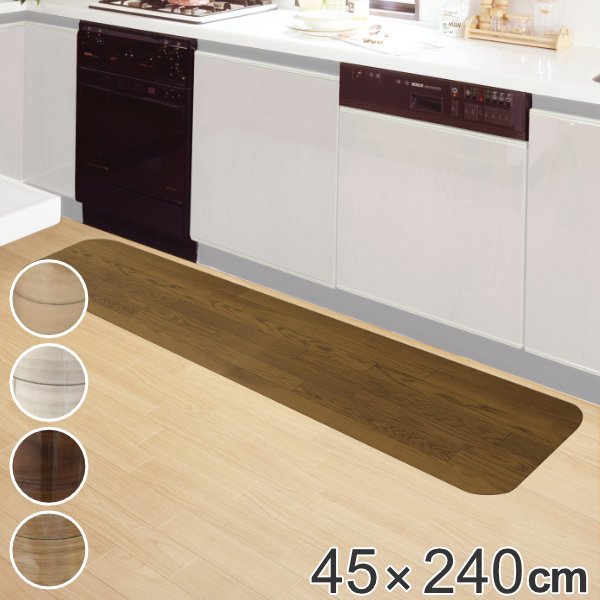 キッチンマット 240cm 吸着キッチンマット 木目 拭ける 吸着 滑らない 45cm×240cm ( 吸着マット キッチン マット キッチン用マット フリーカット )