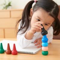 クレヨンの中が空洞になっているので、積み木遊びなど、色々な遊びをすることが出来ます。クレヨンやお絵描きに興味があまりないお子さまでも、転がしてみたり、倒してみたりと指先を使った遊びで楽しめます。このような遊びを通して色を覚えたり、色の組み合わせを楽しんだりと色に対する感性を高めることができます。